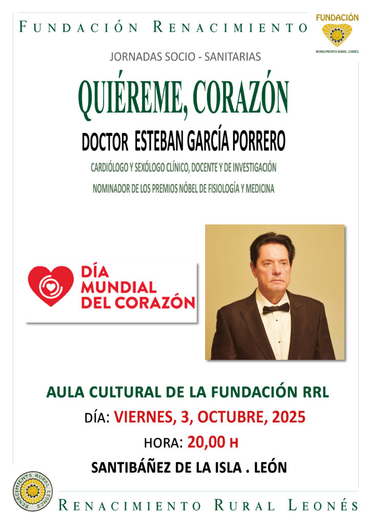01 Oct La Fundación Renacimiento Rural Leonés acoge la conferencia “Quiéreme, corazón” con el doctor Esteban García Porrero