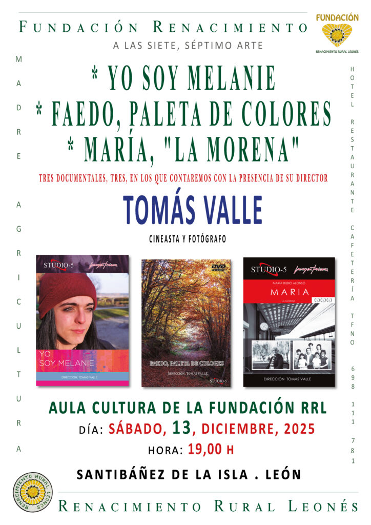 Al término de la inauguración de la exposición Purditrás dedicada al recordado José Manuel Redondo “Lolo”, la Fundación Renacimiento Rural Leonés ofrecerá una nueva propuesta cultural vinculada al séptimo arte. El próximo sábado 13 de diciembre, a las 19:00 h, el Aula Cultural proyectará tres documentales del cineasta y fotógrafo astorgano Tomás Valle, quien estará presente durante el acto para conversar con el público y compartir el proceso creativo de cada obra.